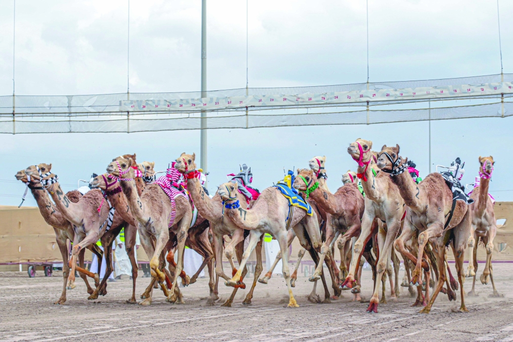 As many as 4000 camels competing from February 12 to 17, from various governorates of the Sultanate of Oman and GCC countries, competing in74 rounds in different categories for valuable prizes, 20 cars and 15 icons including the Cups, golden and silver swords.The opening day witnessed 25 rounds, for the ‘Hagayeg’ category,two years old, for 4 km. Nineteen races were in the morning with cash prizes for the top ten.