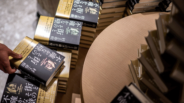Copies of “The City and Its Uncertain Walls”, so far only available in Japanese, were piled up on tables at the entrance to Kinokuniya store in central Shinjuku district.