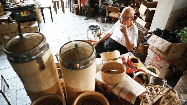 Bent over a low bench in his cluttered Hong Kong workshop, dark-framed glasses perched on his nose, Lui Ming deftly assembles a bamboo steamer, a utensil essential to Cantonese cooking.
