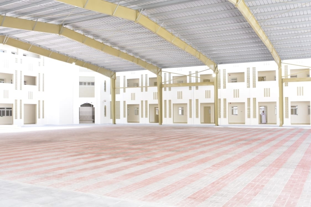 Al Somoud School for grade 1 to 4 in the Wilayat of Barka consists of 40 classrooms, 7 offices, educational resources centre, multi-purpose room, two playgrounds, accommodation for guards and drivers and a permanent shade structure.