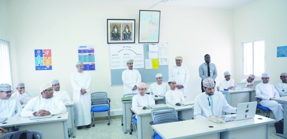 During the visit in which he was accompanied by Dr Ali bin Humaid al Jahwari, Director-General of Education in Muscat Governorate, he met a number of educational officials, members of the Assistant Committee for Vocational and Technical Education in Directorate of Education of Muscat Governorate as well as the officials entrusted with the implementation of the vocational and technical education for business management and information technology majors. He listened to an elaborate explanation of the progress of the work plan and inspected the mechanism of applying the two subjects by attending some classes.