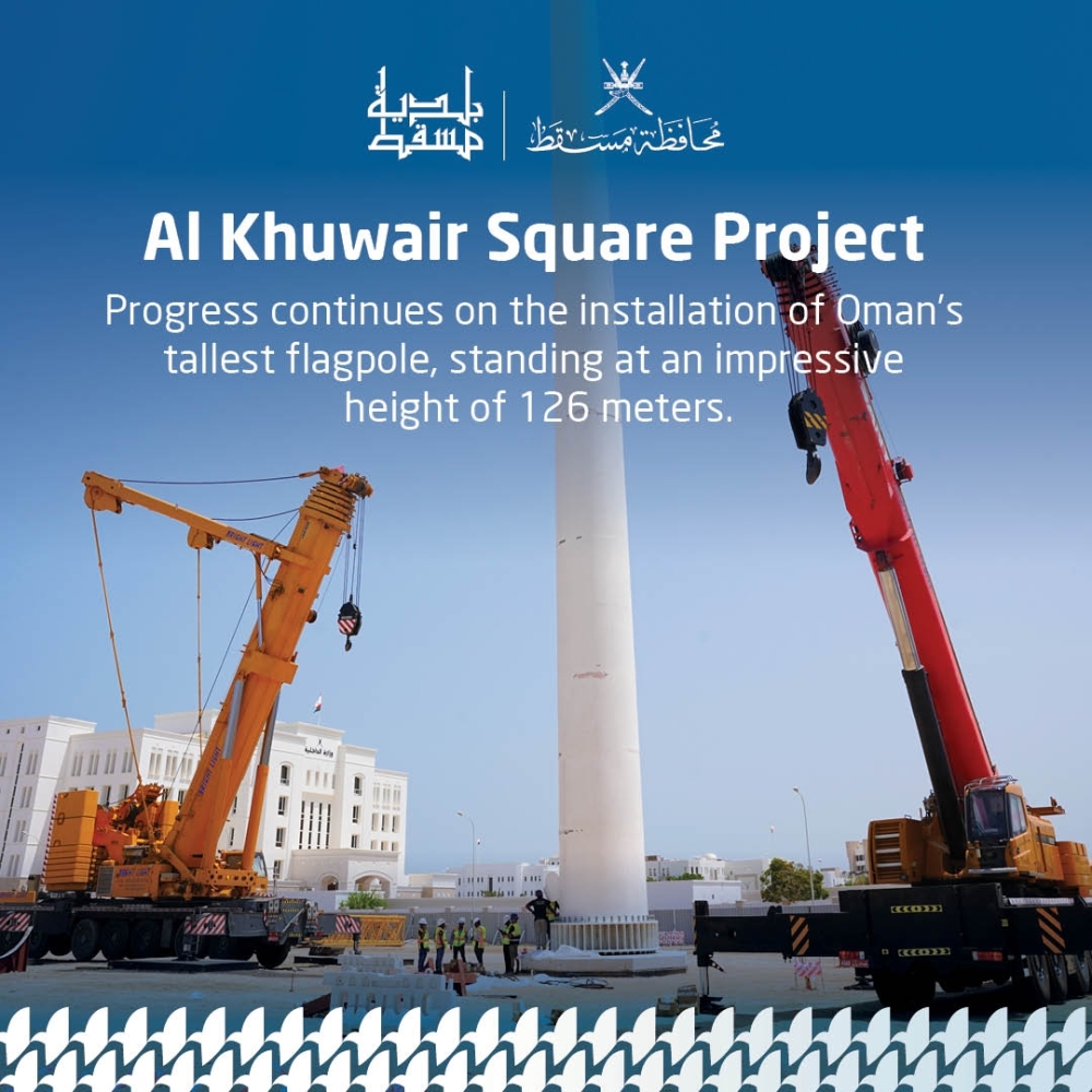 “We have reached 50 metres in height towards our goal of 126 metres, and the whole Al Khuwair Square project is progressing rapidly. We plan to inaugurate the flagpole during the country’s fifty-fourth National Day celebrations in November,” said a source associated with the construction.