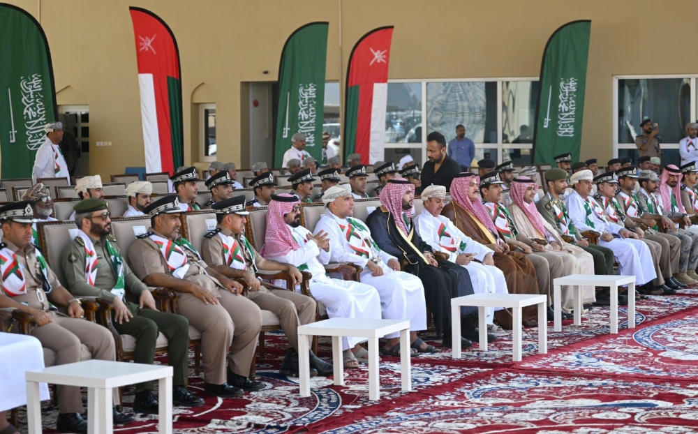 The celebration, organized by the Secretariat-General for National Celebrations in cooperation with the Royal Oman Police at the Empty Quarter Border Checkpoint between the Sultanate of Oman and the sisterly Kingdom of Saudi Arabia, embodies the close fraternal and historical ties that bind the two brotherly countries and peoples reflecting the bonds of joint cooperation in various fields.