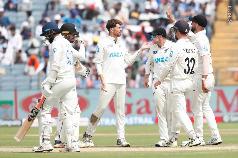 A stunned India fell to 156 all out in their reply, gifting the visitors a first-innings lead of 103 on a turning Pune pitch.