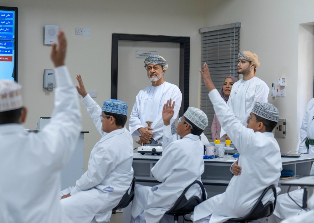 Amerat: His Majesty Sultan Haitham bin Tarik visited the "Sultan Faisal bin Turki School for Boys" in the Wilayat of Al Amerat, Governorate of Muscat on Monday.