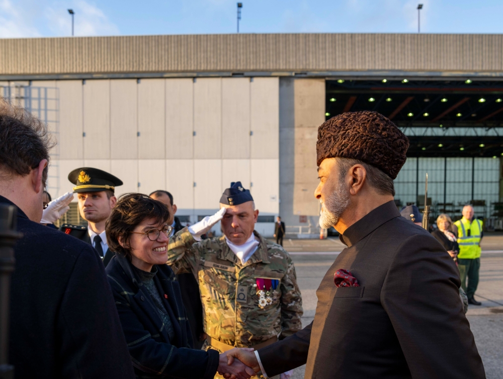 At the foot of the ramp, His Majesty the Sultan was received by Tinne Van der Straeten, Minister of Energy, some Belgian officials and members of the Omani embassy in the Kingdom of Belgium.