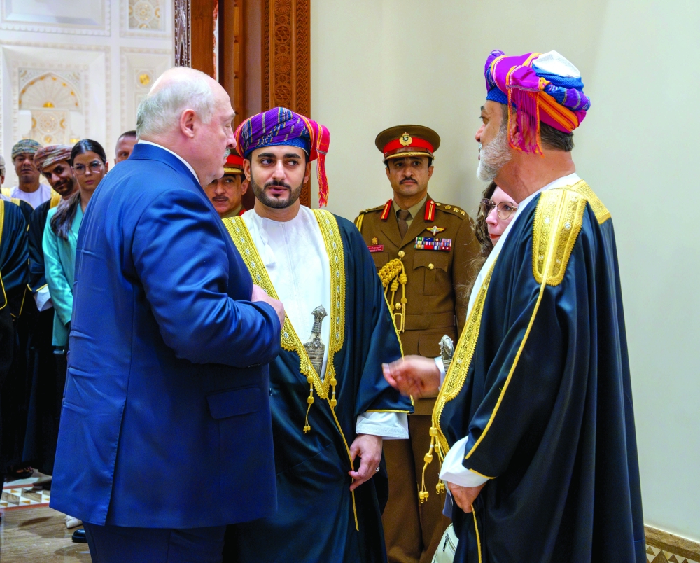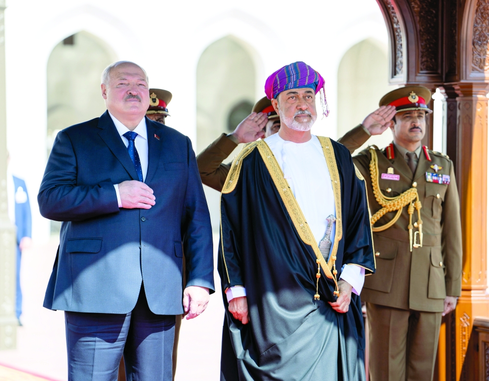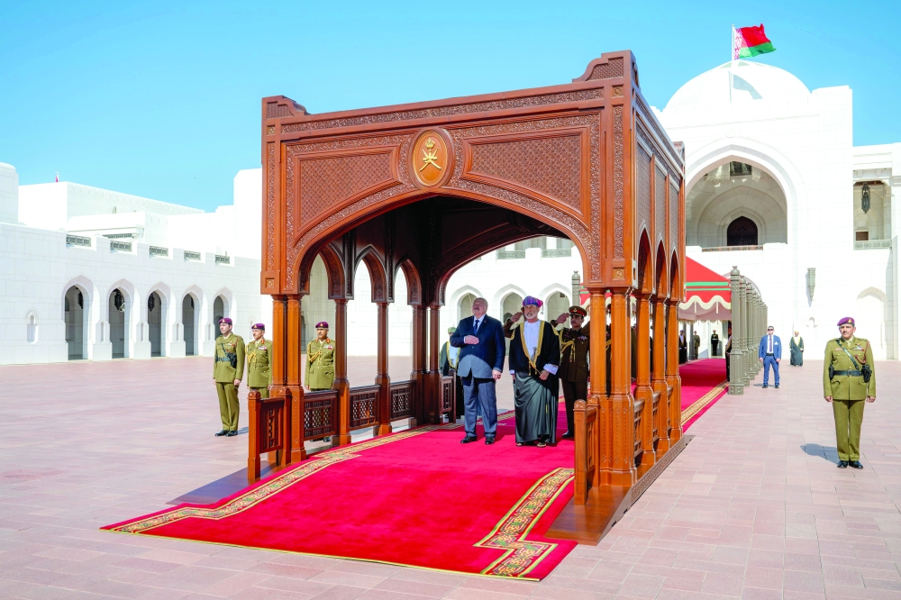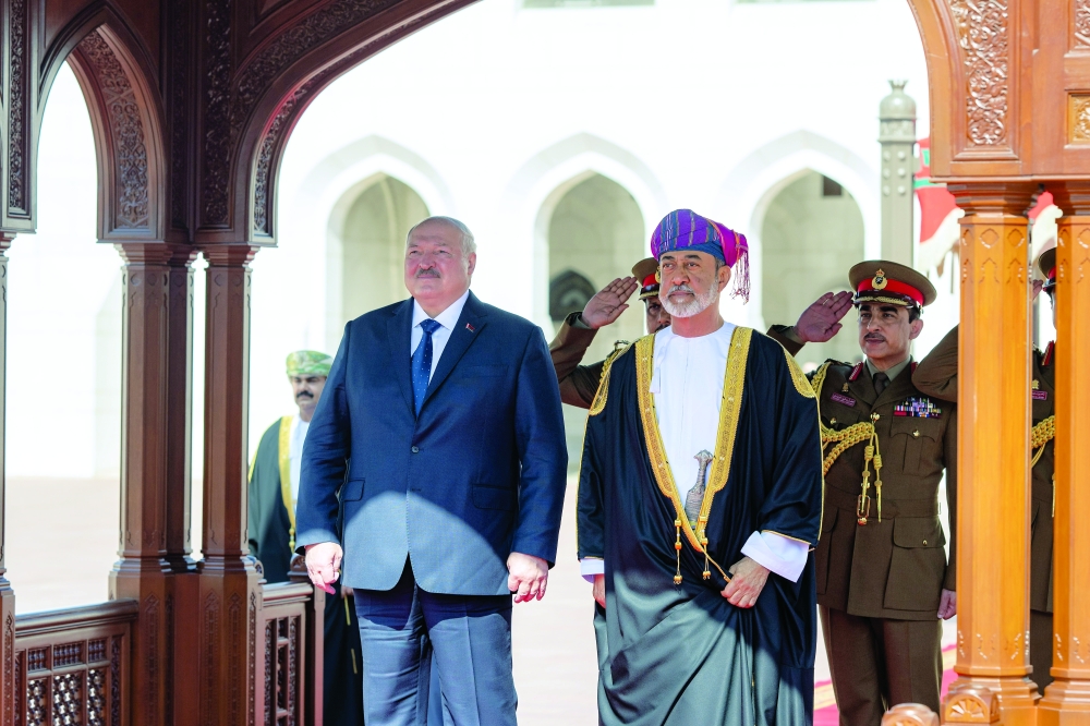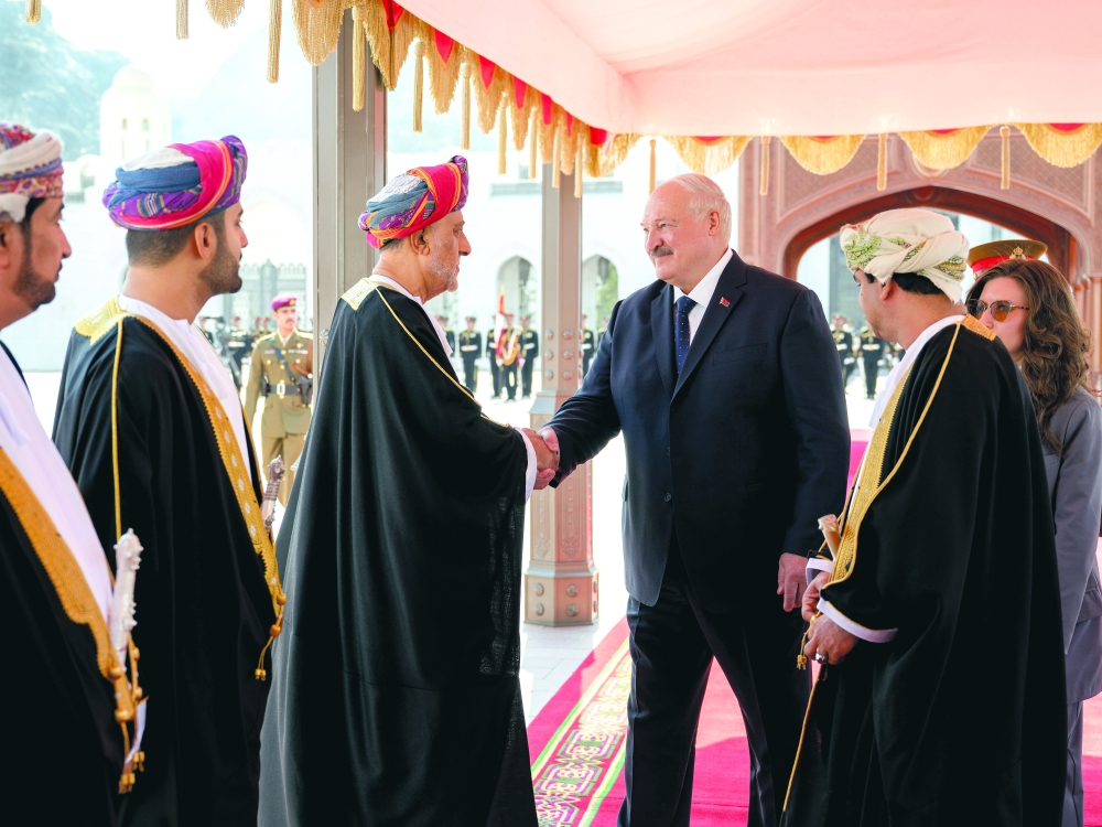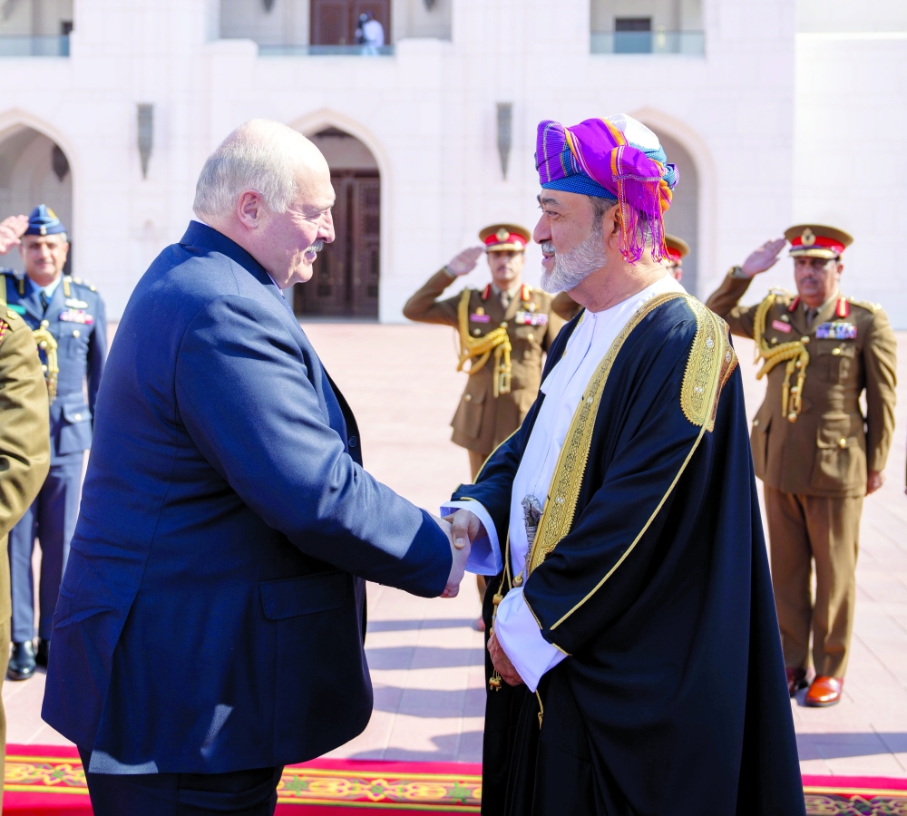 Muscat: President Aleksandr Lukashenko of the Republic of Belarus was accorded an official reception at Al Alam Palace on Sunday, on the occasion of his visit to the Sultanate of Oman.