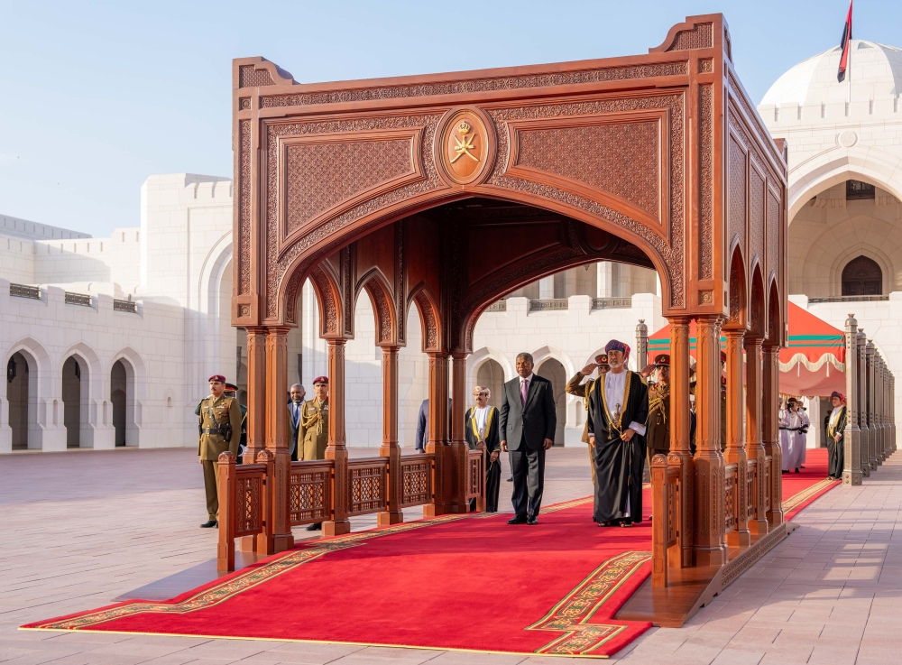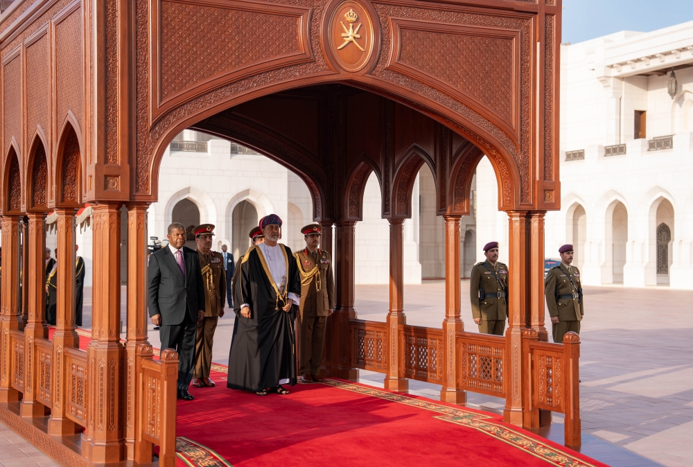 Muscat: President Joao Lourenco of the Republic of Angola was accorded an official reception at Al Alam Palace on Thursday, on the occasion of his visit to the Sultanate of Oman.