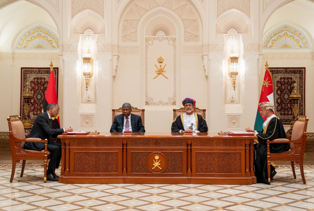 Muscat: His Majesty Sultan Haitham bin Tarik and President Joao Lourenco of the Republic of Angola on Thursday graced the signing of an agreement and two Memoranda of Understanding (MoUs) at Al Alam Palace, as part of the President’s official visit to the Sultanate of Oman.