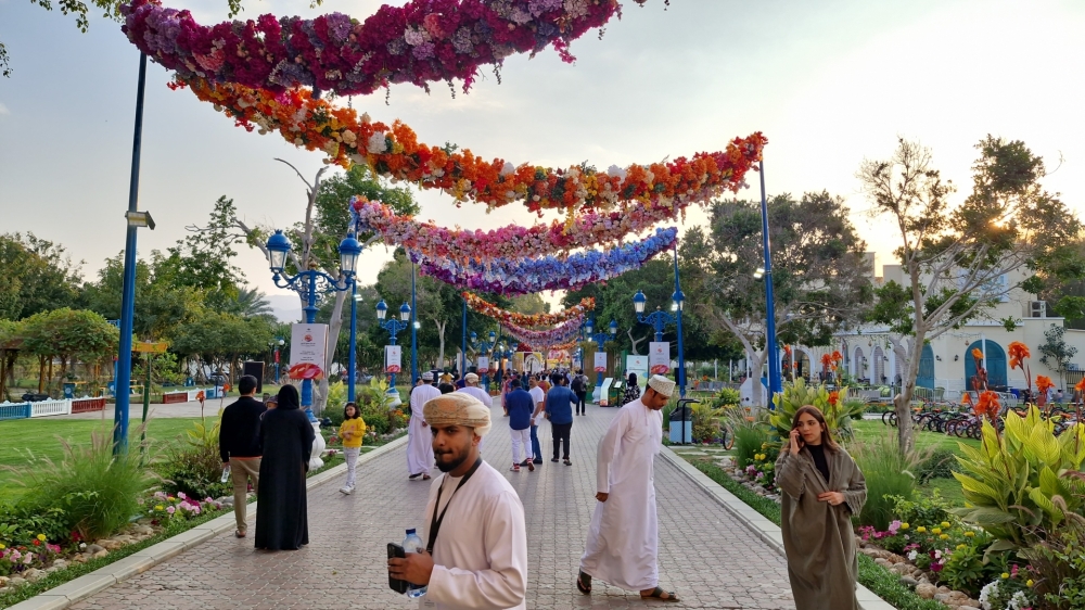 Side by side, the first edition of the Muscat Flower Festival, bringing flowers and floral artistes from across the world and a celebration of the beauty of nature, arts and diverse environments, also began welcoming visitors and transforming Al Qurum Natural Park into an impressive floral spectacle.