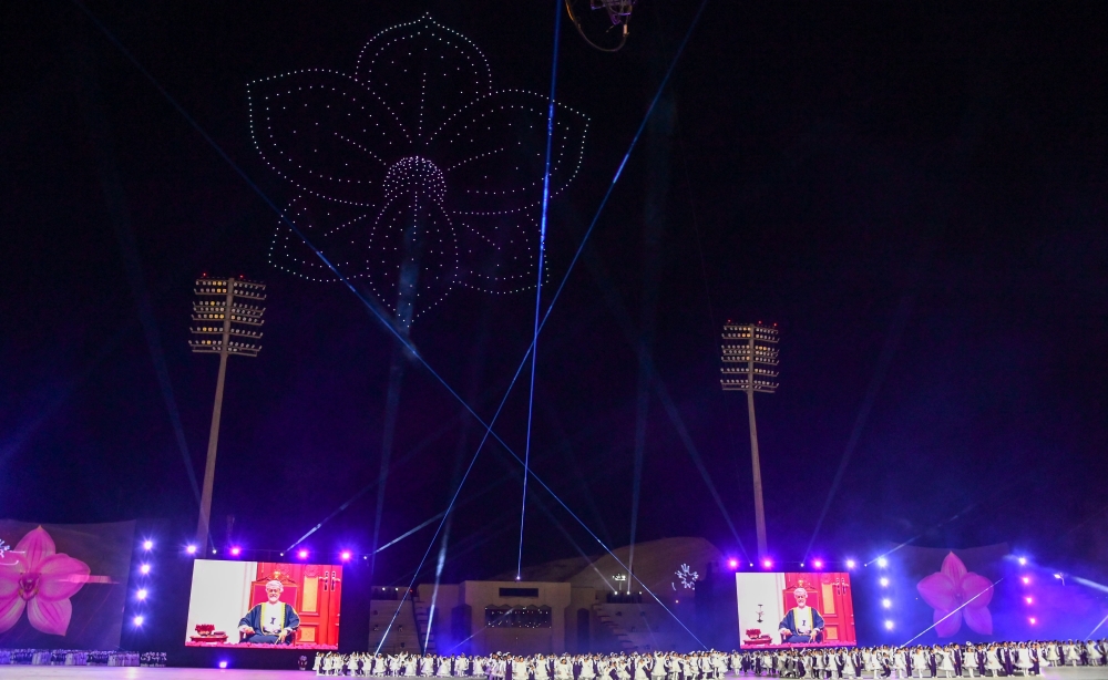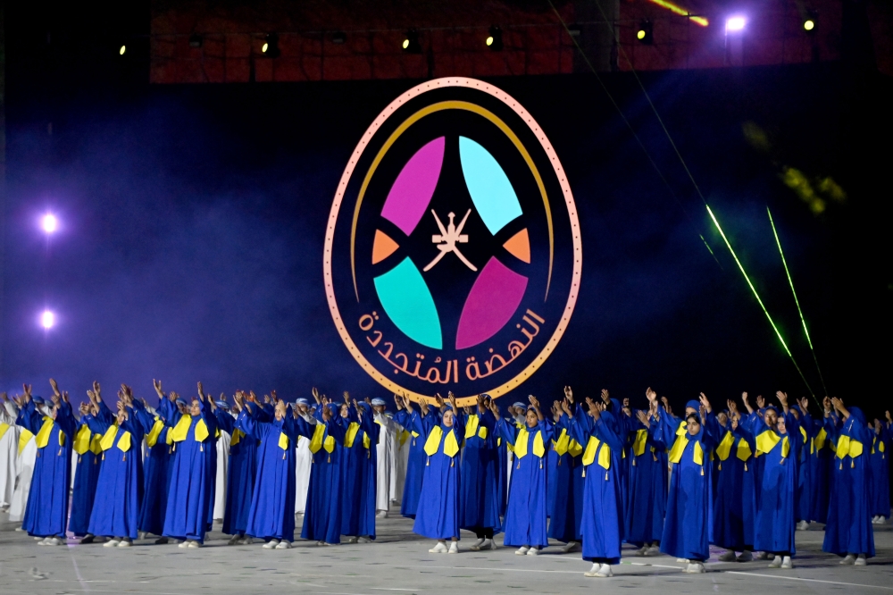 The finale portrayed sentiments of allegiance and gratitude to His Majesty Sultan Haitham bin Tarik, and the pledge to move forward under his wise leadership towards wide horizons of progress and prosperity in the realm of Oman's Renewed Renaissance and sustainable growth.