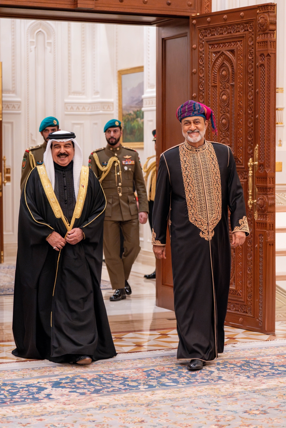 Muscat: His Majesty Sultan Haitham bin Tarik hosted an official dinner at Al Alam Palace guesthouse on Tuesday in honour of King Hamad bin Issa al Khalifa of the Kingdom of Bahrain.