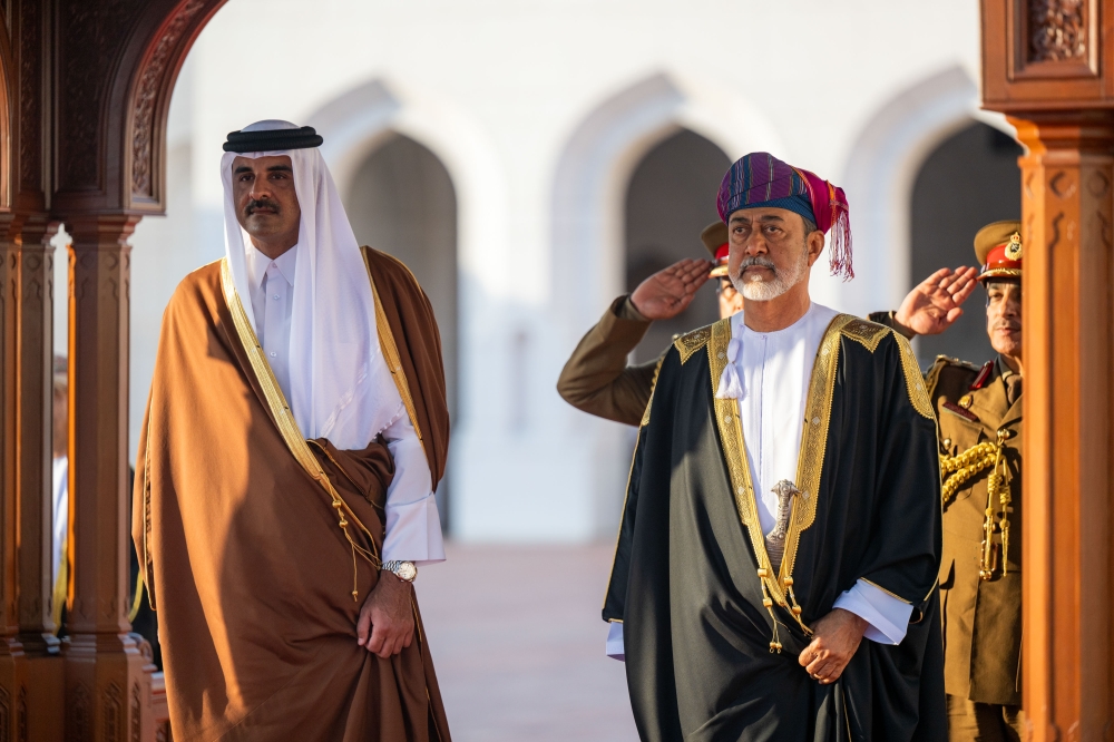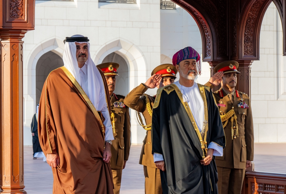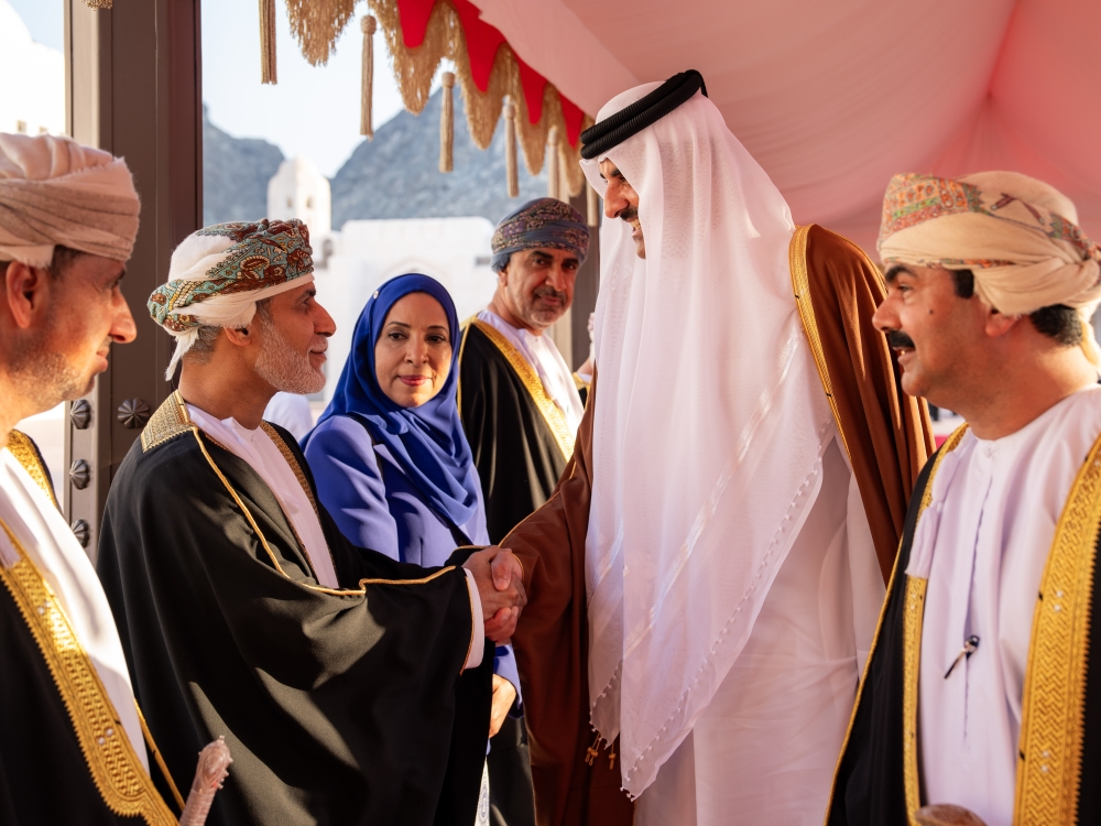 His Majesty Sultan Haitham bin Tarik led the welcoming party for Shaikh Tamim.