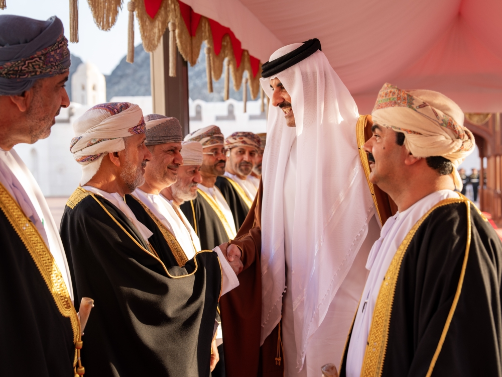 Along with His Majesty the Sultan, Shaikh Tamim was received by HH Sayyid Shihab bin Tarik al Said, Deputy Prime Minister for Defence Affairs, Sayyid Khalid bin Hilal al Busaidi, Minister of the Diwan of Royal Court, Gen Sultan bin Mohammed al Numani, Minister of the Royal Office, Sayyid Hamoud bin Faisal al Busaidi, Minister of Interior, Sayyid Badr bin Hamad al Busaidi, Foreign Minister (Head of the Mission of Honour), Sayyid Ammar bin Abdullah al Busaidi, Ambassador of Oman to Qatar, Shaikh Mubarak bin Fahad al Thani, Ambassador of Qatar to Oman, members of the mission of honour and members of the Qatari Embassy in Muscat.
