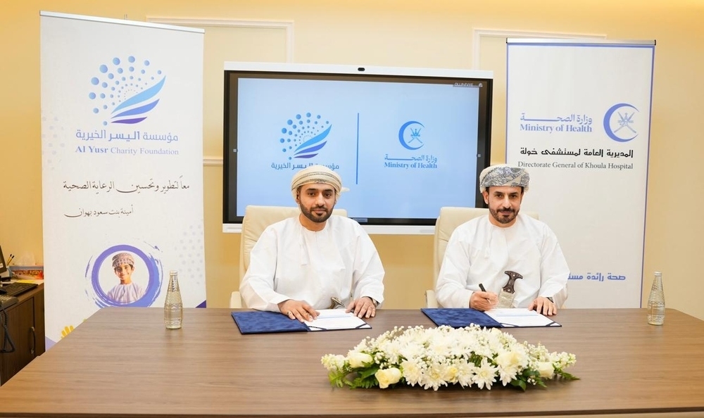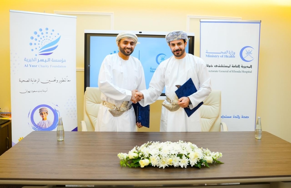 The agreement was signed by Dr Rashid bin Mohammed al Alawi, Director- General of the Directorate-General of Khawla Hospital and Omar bin Mohammed al Farsi, Director-General of Al Yusr Charity Foundation.