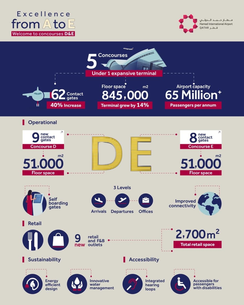 The newly inaugurated Concourses D and E introduce several enhancements designed to improve passenger experience and operational efficiency.