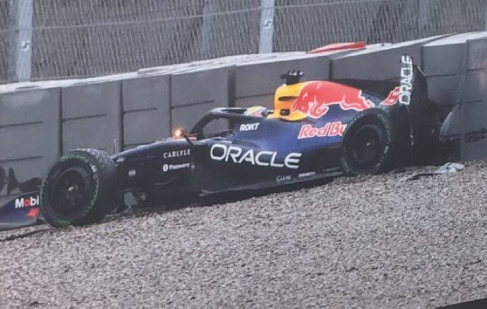 The BBC reported that Hadjar spun and hit the barrier backwards in drizzly conditions. Videos and photos posted on social media appeared to show the crashed car. The images could not be verified by Reuters.