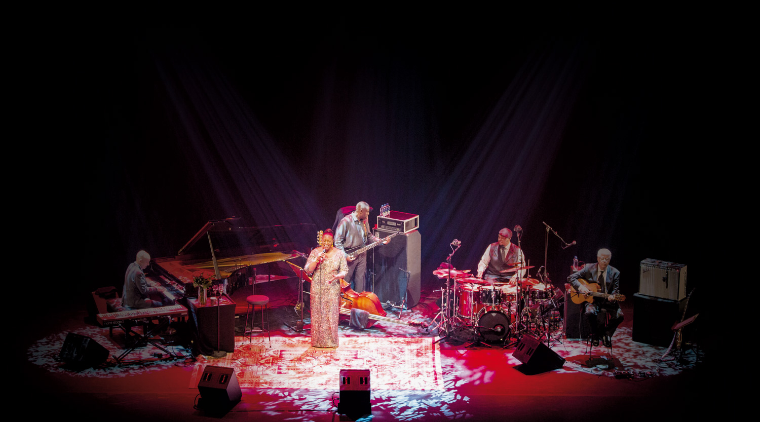 Along with the 61-year-old Diva, who has been performing since 1976, came a Quartet of the finest musicians around, and the show opened with the four men in an instrumental. It was an up-beat funk number, giving each the opportunity to solo on electric guitar, electric bass, grand piano and drums. Gradually the piece became more mainstream Be-bop, and with a slight uneasiness that the whole set would be in the Soul-R&B fusion style of her latest album, the musicianship of the band was unquestionably established.